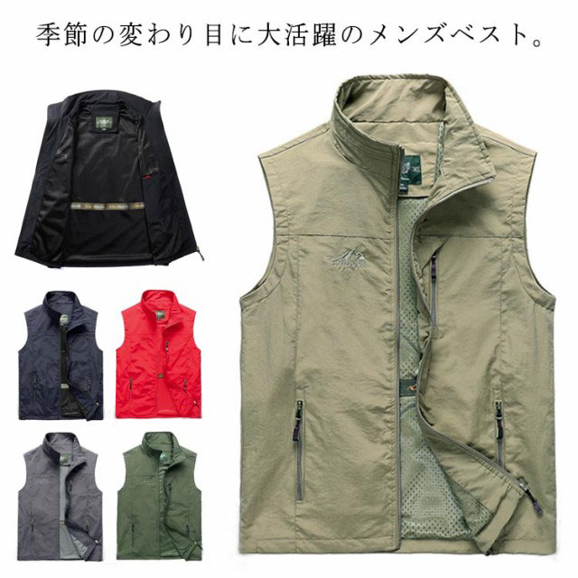 ゴルフベスト スタンドカラー ジャケット 登山 釣り カメラマン キャンプ 仕事 通気 送料無料