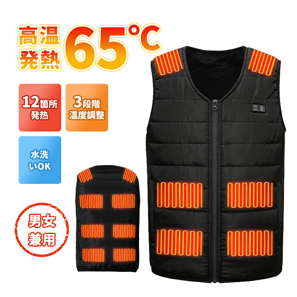 12箇所発熱 電熱ベスト 電熱ウェア usb充電 前3段温度調整 電熱ジャケット 加熱ベスト ヒーターベスト バイクウェア インナー 発熱ベスト 水洗い 速暖 ウェア 高齢者 作業着 防寒 極暖超軽量