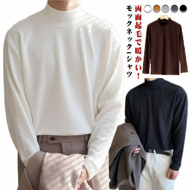 ハイネック ロンt 両面起毛 無地 防寒 長袖 秋冬 tシャツ あったか カットソー 保温 極暖 モックネック インナー 暖かい シンプル ストレッチ おしゃれ トップス 重ね着 秋服 秋 レイヤード