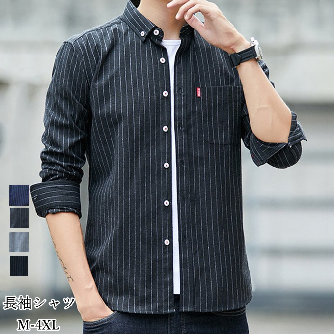 ストライプシャツ 長袖シャツ メンズシャツ カジュアルシャツ ジャケット アウター 折り襟 ストライプ 秋物 冬物 送料無料