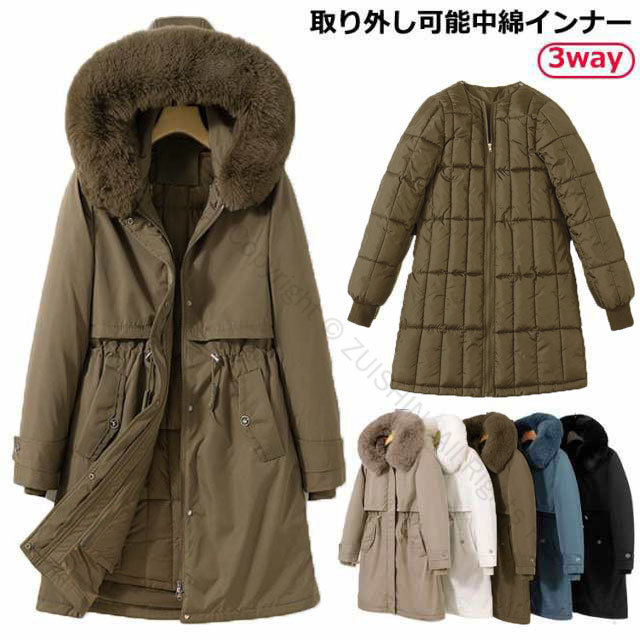 レディース モッズコート 裏ボア ファーコート 3way ボアコート ロングコート 取り外せるファー ウエスト紐 ウエスト絞り aライン スプリングコート 秋冬用 防寒対策 着回し抜群 トレンチコート