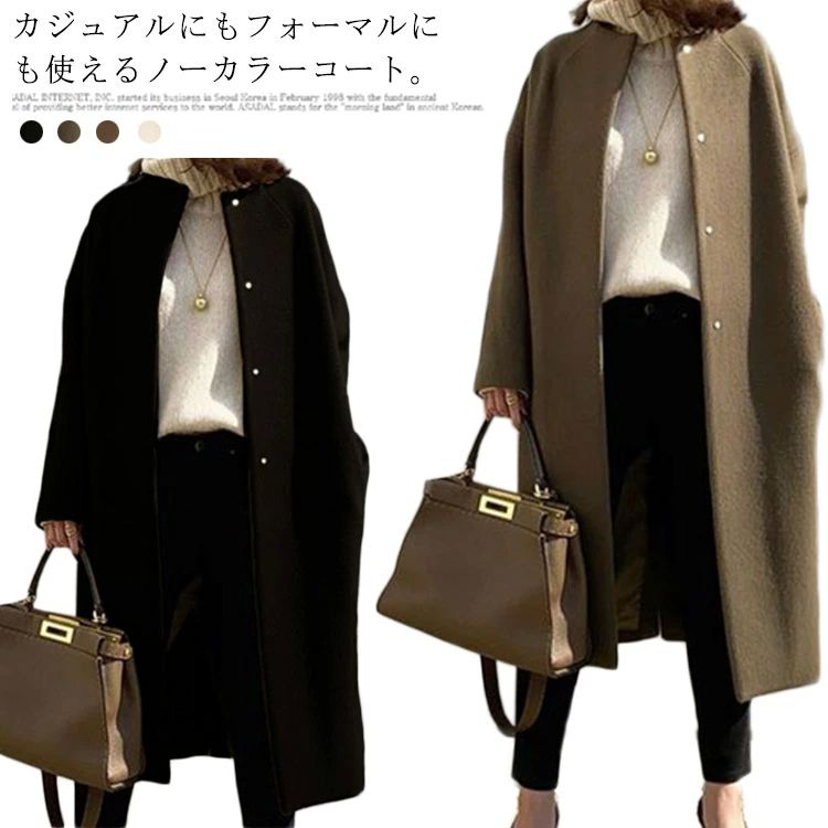 通勤 レディース ロングコート アウター ノーカラーコート 厚手 秋冬 暖かいレディースファッション コート ジャケット フォーマル