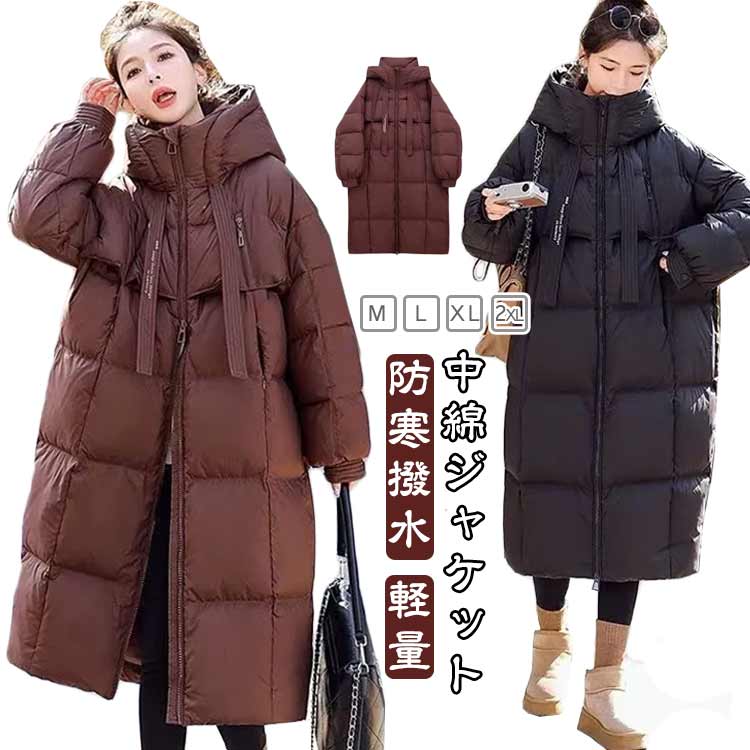 ダウンコート レディース ベンチコート エコダウンジャケット ロングコート 冬 フード付き 羽織り 軽い 中綿ジャケット 中綿コート アウター ジャンパー 前開き 厚手 防寒 撥水 ロング丈 暖かい