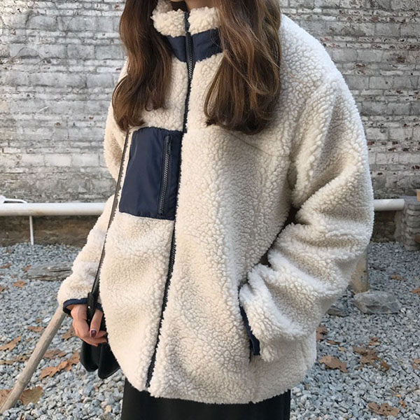 ポケット付き トップス ジップアップ ボアコート ボアジャケット 暖かい