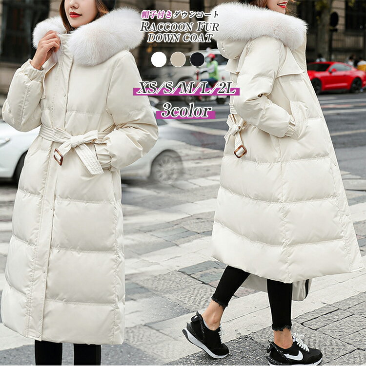 ダウンコート コート レディース 冬 ダウンジャケット ロングコート 大きめポケット ファー付き ポケット付き ファー 取り外し可能 アウター ジャンパー 前開き ドロスト 暖かい 防寒 撥水 厚手