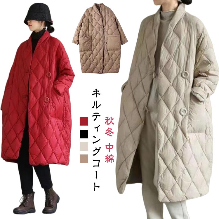 キルティング 裏ボア 冬 スタンドカラー コート キルティングコート レディース 暖かい ボアフリース アウター 中綿 ロングコート ベンチコート キルトジャケット ポケ ジャケット