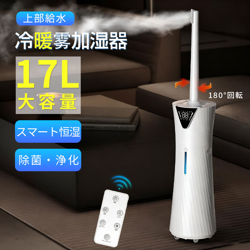 加湿器 超音波加熱式 大容量17L 空気清浄機 花粉対策 UVライト付き 除菌 ハイブリッド式加湿器 超音波加湿器 上から給水 UV除菌 24Hタイマー 乾燥対策 空焚き防止 リモコ ミスト3段階調節