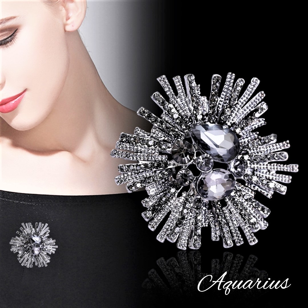 スワロフスキー と キュービックジルコニア 大ぶり ブラック ストーン アクセサリー レディースジュエリー ブローチ ブローチジュエリー