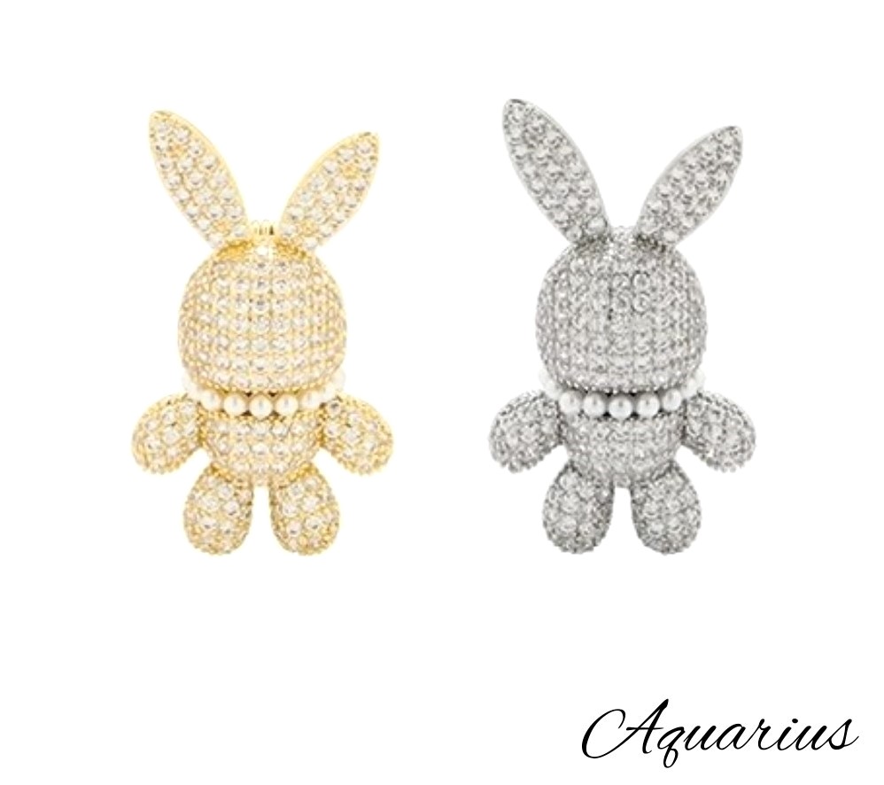 キラキラ ビジュー オール スワロフスキー の うさぎ ブローチ 2カラー ゴールドジュエリー アクセサリー レディースジュエリー シルバー