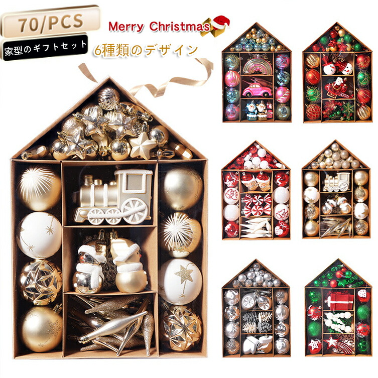 クリスマス 飾り ボール 70ピース クリスマスツリー 装飾 オーナメント 雪だるま 車 汽車 手袋 ゴールド シルバー 松ぼっくり