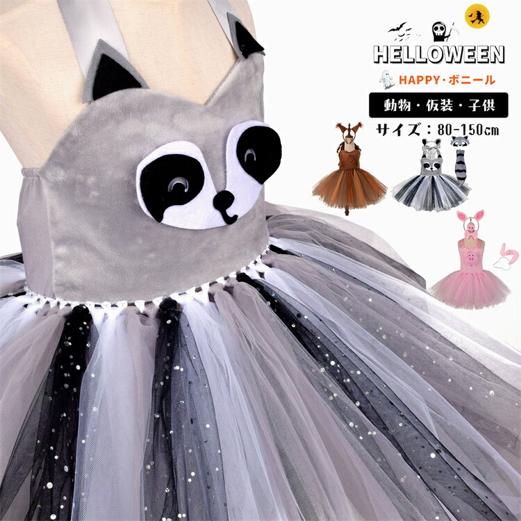 ハロウィン キッズ 動物 仮装 チュールワンピース スリ ブタ タヌキ tutu チュチュパニエスカート コスプレ コスチューム かわいい ダンス衣装 キッズ服 ベビー服 保育園 通園 可愛い 幼稚園