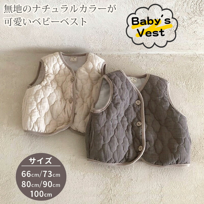 ベビー ベスト 春 秋 冬 無地 キルティング トップス コート キッズ服 ベビー服 赤ちゃん 子供服 厚手 2色 男の子 女の子 男女共通 おしゃれ 防寒 体温調節に 70 80 90 60