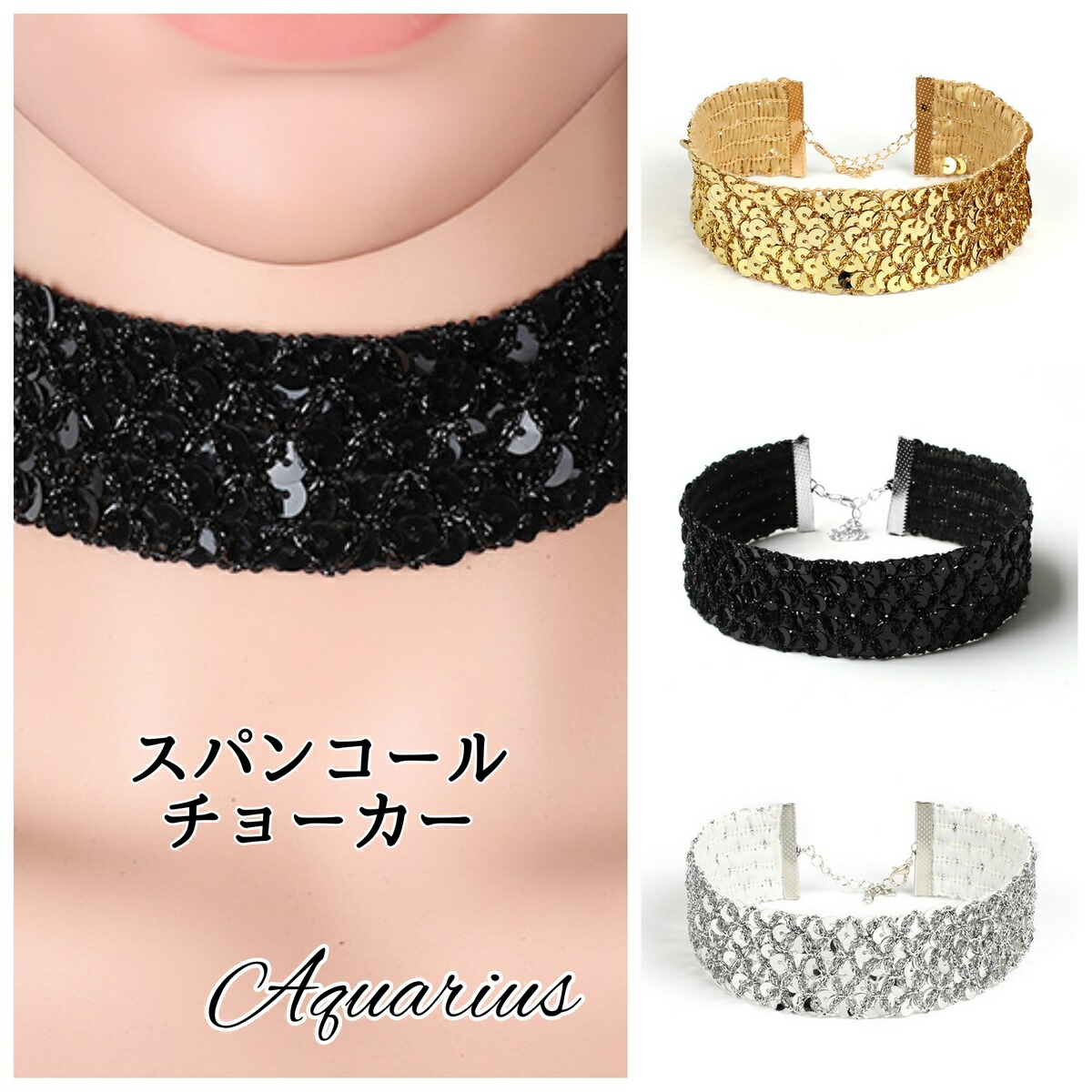 カラバリ スパンコール チョーカー 5カラー レッド ホワイト ゴールド ブラックジュエリー アクセサリー レディースジュエリー シルバー