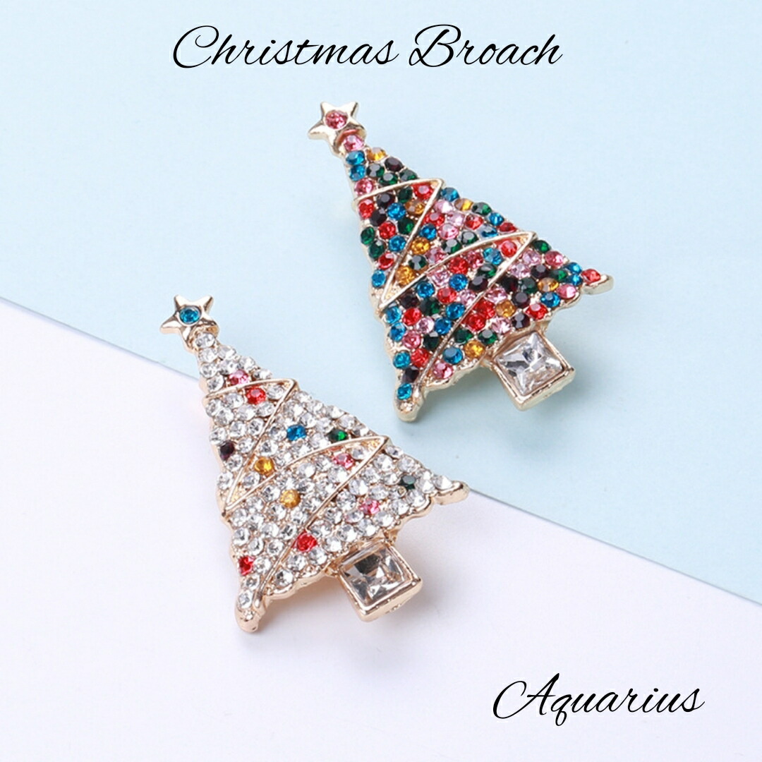 オール スワロフスキー クリスマス ツリー ブローチ 2カラー ギフトポーチ付きジュエリー アクセサリー レディースジュエリー タイプG