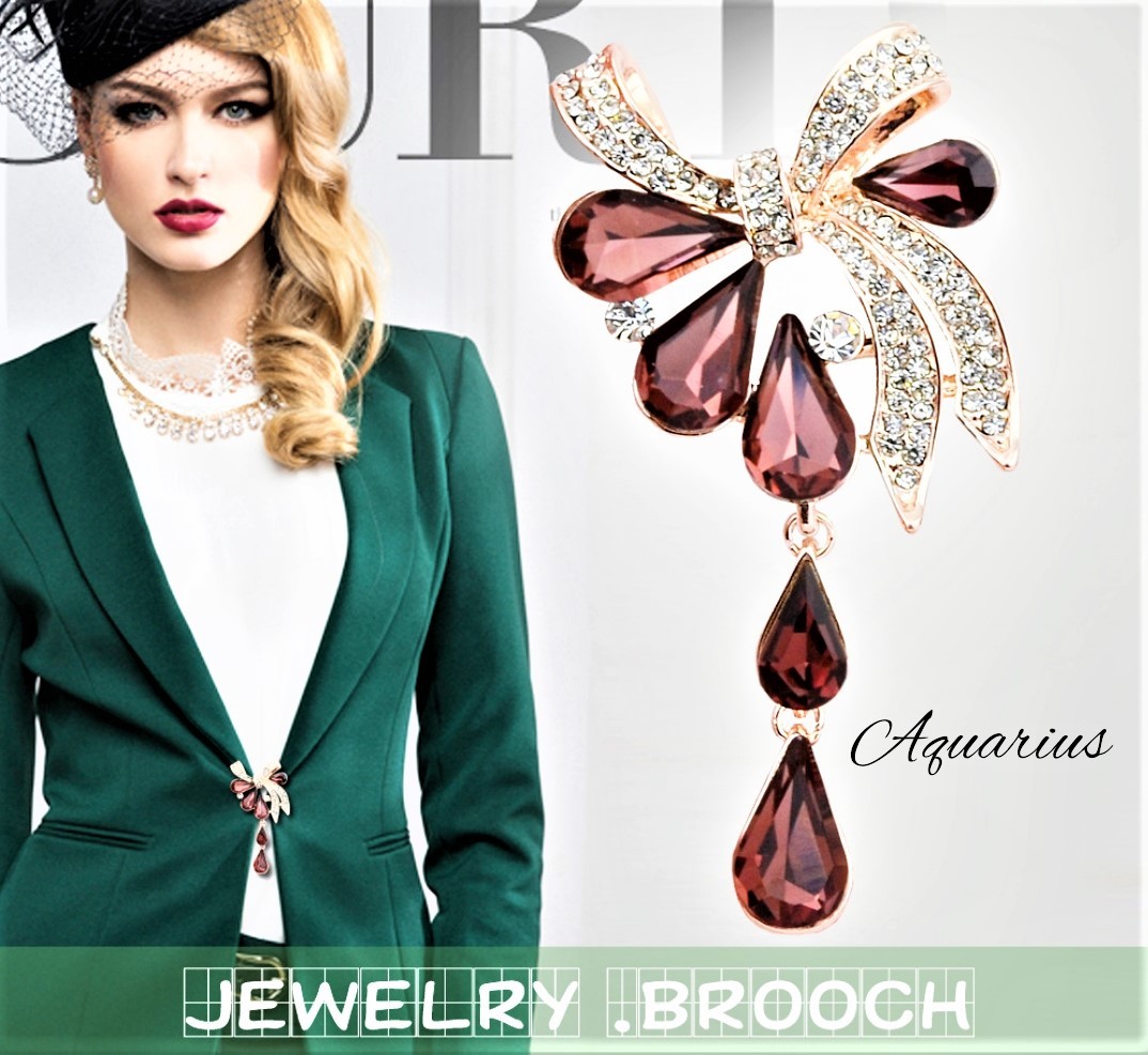 スワロフスキー 揺れる ドロップ リボン ブローチ 2カラー クリアジュエリー アクセサリー レディースジュエリー エンジ