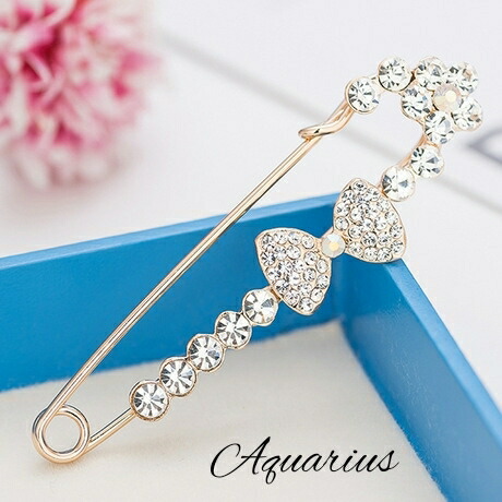 スワロフスキー ラインストーン リボン モチーフ の ストール ピン アクセサリー レディースジュエリー ブローチ ブローチジュエリー