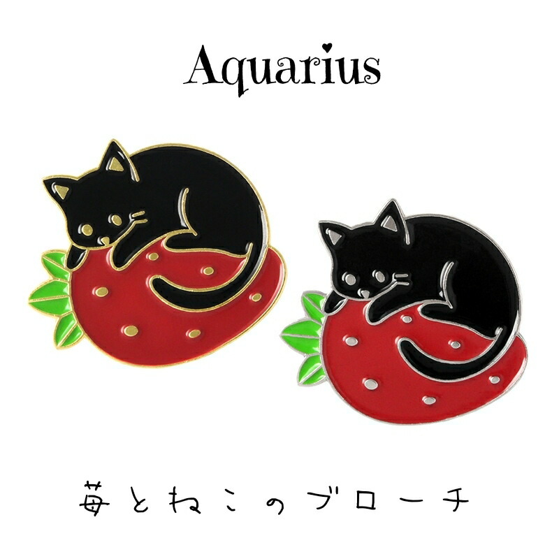 苺 と 猫 の ブローチジュエリー レディースジュエリー ブローチ アクセサリー