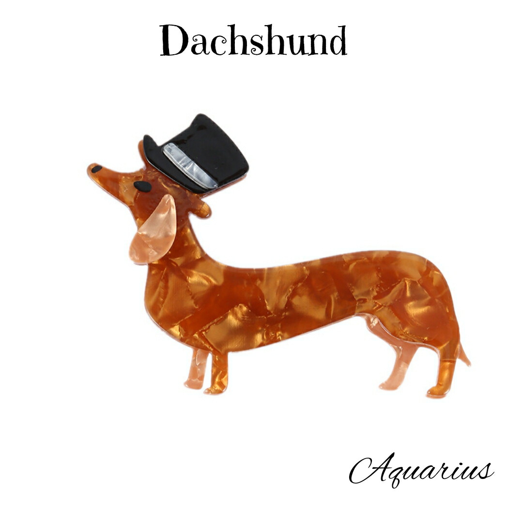 シルクハット の 紳士な ダックスフンド ブローチ アクセサリー レディースジュエリー ギフトポーチ付きジュエリー