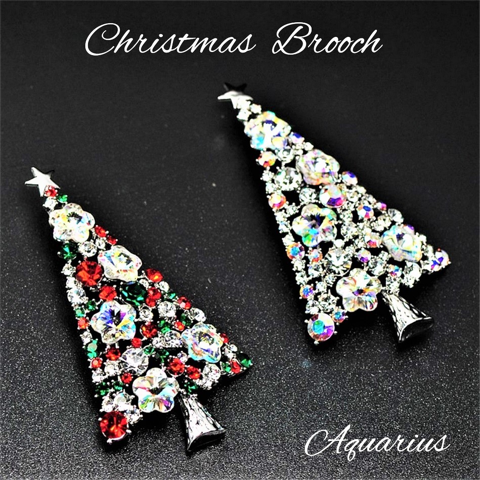スワロフスキー クリスマス ツリー ブローチ 2カラー 大きめ ジュエリー アクセサリー レディースジュエリー タイプ