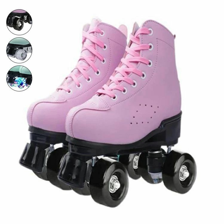 四輪 光る輪 PU 成人 キッズ レザー 無地 通気性 ローラーシューズ ジュニア クワッド インラインスケート 子供用 スポーツ用品 ローラースケート 初心者 大人 運動 入門向け シンプル 二列