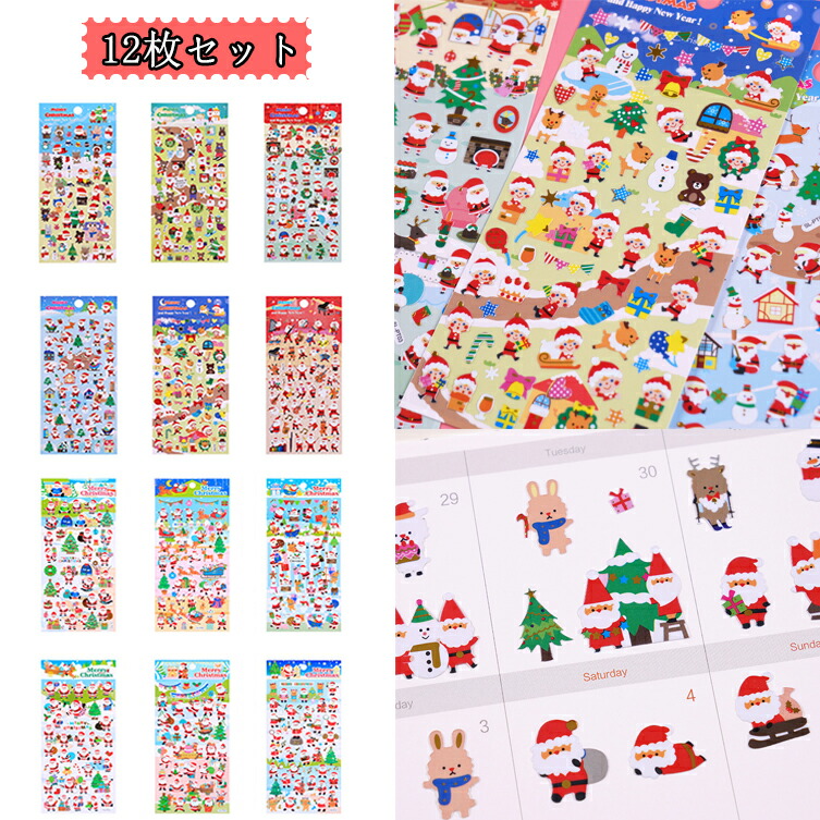 12枚セット クリスマス 可愛いシール 飾り 12種類 ごほうびシール ご褒美シール シール 装飾 DIY用 手帳 ステッカーデコ 手作り キラキラ 貼り付け 水筒 ペン 手芸用 スマホケース