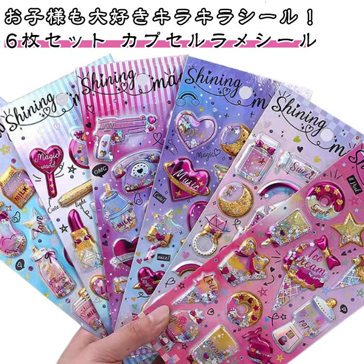 【6枚セット カプセルラメシール】 ぷくぷく 立体 女の子 小学生 ギャル コギャル シール帳 カラフル 派手 原宿 キラキラ シール帳