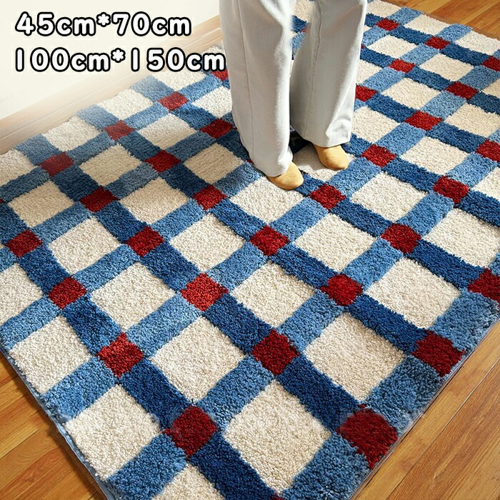 ラグ ラグマット 角形 チェック ヴィンテージ カーペット かわいい 滑り止め付 防ダニ 抗菌 オールシーズン快適に使用 床暖房対応 フローリングマット ダイニングマット 冷房対応
