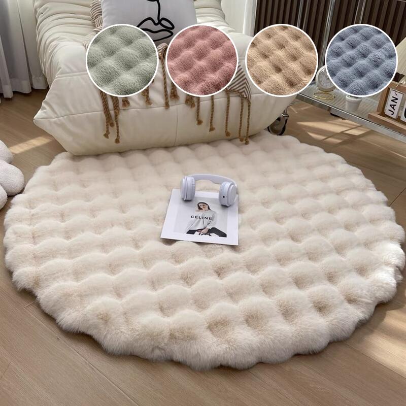 ラグ おしゃれ 円形 ラグマット ラビットファー調 秋冬 北欧 モコモコ もこもこ マイクロファイバー ラグジュアリー 冬用 ふわふわ 厚手 リビング カーペット ホットカーペット 低ホルム