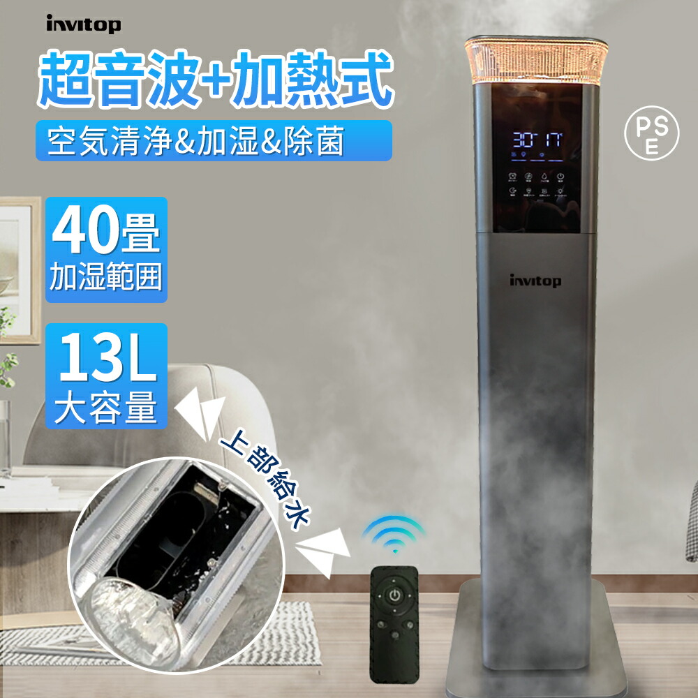 加湿器 スチーム式 加湿機 超音波加熱式 大容量13L 気化式 空気清浄 省スペース タワー型 40畳 加熱 uv除菌 噴霧量1000ML H 除菌 強力 空焚き防止 上部給 湿度調整機能付き