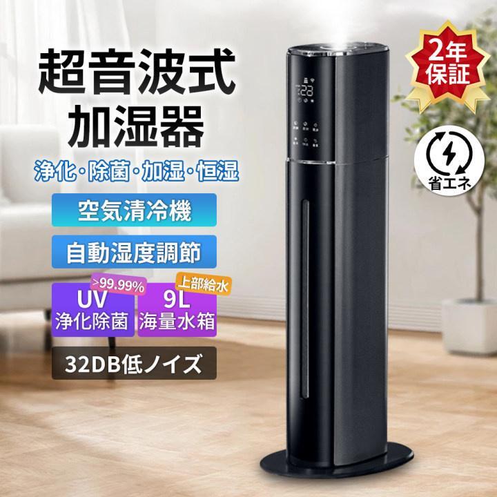 加湿器 超音波式 大容量 タワー型 uv除菌 マイナスイオン 9L 4重除菌 48H連続運転 自動湿度調節 空焚き防止 上部給水 スチーム式 空気清浄機 上から給水 花粉 省エネ 最大噴霧量3 静音
