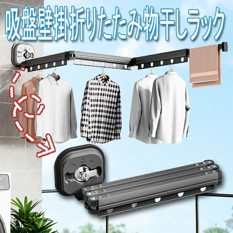 吸盤壁掛折りたたみ 物干しラック 室内家庭用バルコニー 穴あけ 吸盤 物干しラック アルミニウム合金 乾燥ラック バルコニー 洗濯物干し 穴あけ不要 物干しポール 吸盤 壁掛け ラック