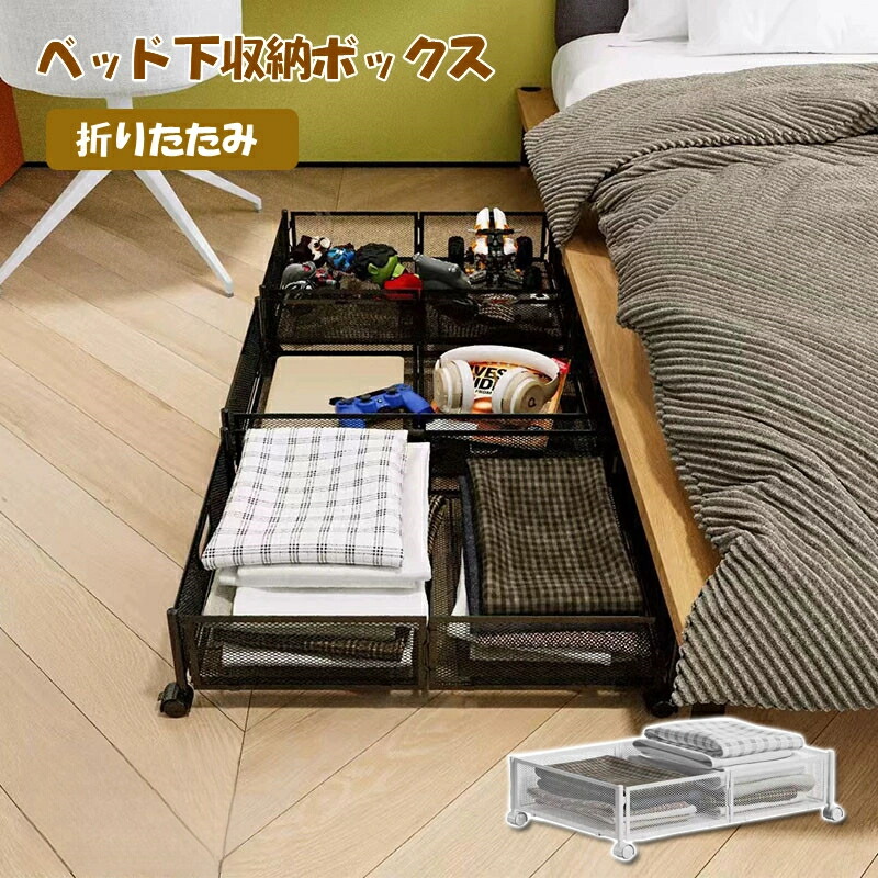 ベッド下収納 収納ケース ベッド下 収納ボックス 折りたたみ キャスター付 ローラー付き 大容量 引出し 折りたたみ便利 金属 耐久性 衣類 隙間収納 衣装ケース 隙間 すきま収納 ソファー下 すき間
