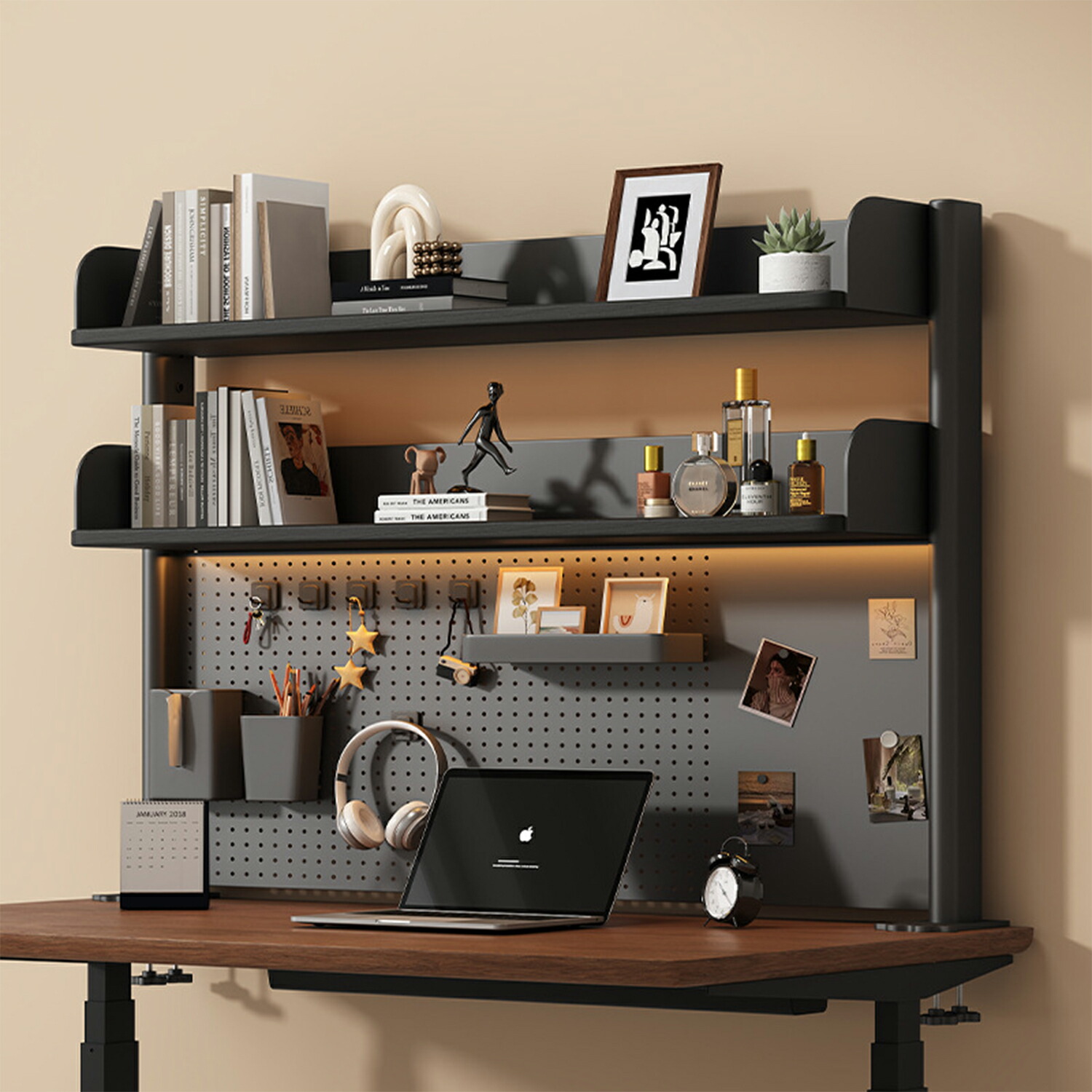 デスク上収納ラック クランプ式 机上ラック 有孔ボード付き 1/2段 ホワイト ブラック 組立式 高さ調節できる棚 多機能 学校/オフィス/事務用品