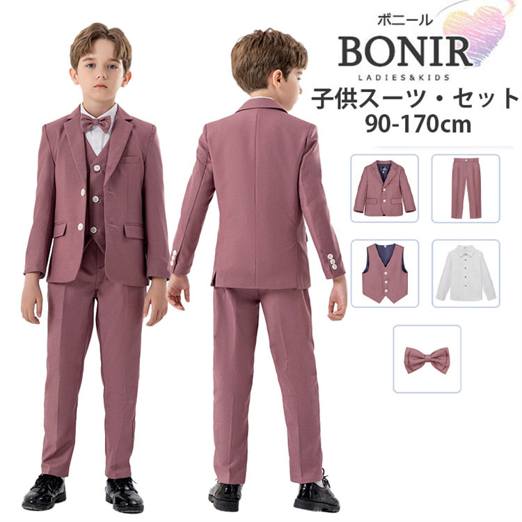 卒業式 4点セット 小学校 フォーマル スーツ 男の子 キッズ 入学式 入園式 小学生 中学生高校生 長袖 ピンク ジャケット ベスト パンツ シャツ フォーマルセット オシャレ 可愛い 蝶ネクタイ