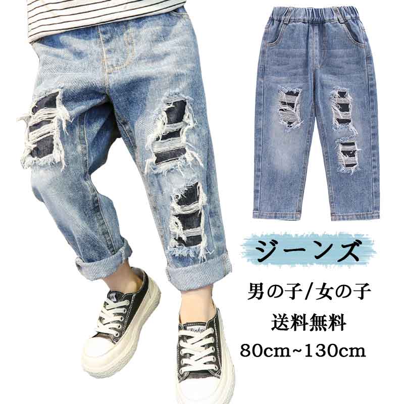 【レビュープレゼント中】子供服 男女兼用 ダメージデニムパンツキッズ用 着心地良い100・110・120・130・140・150・160 パーティー 宴会 お洒落なママさん必見!