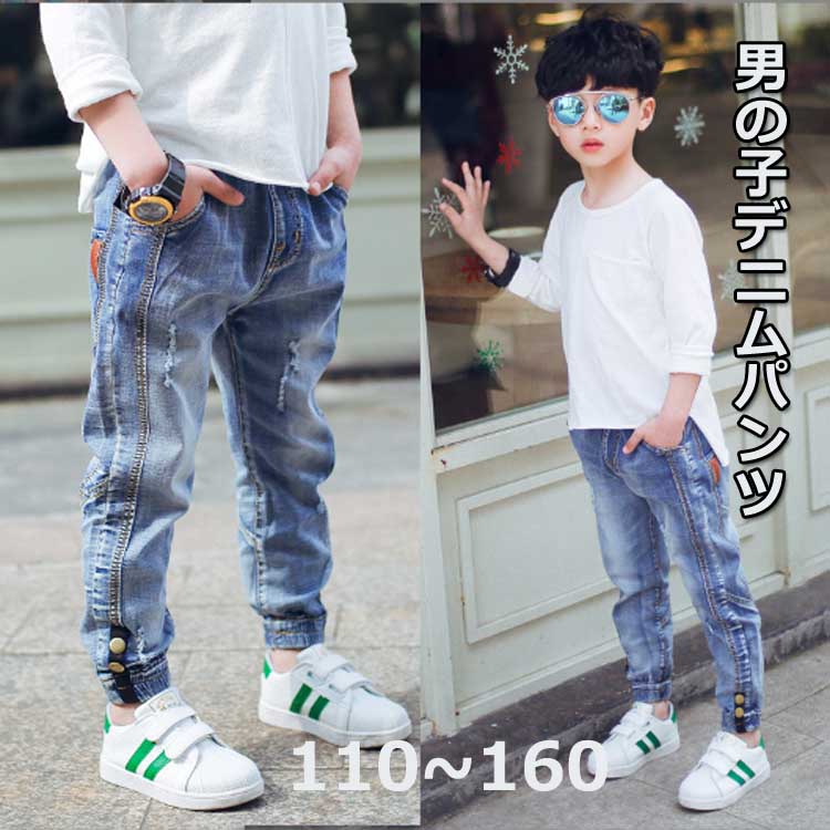 新作学生 デニムパンツ男の子 ダメージジーンズ 子供服 大人っぽいジーンズ デニムパンツ ロングパンツ ボトムス 演出 レジャー 入学式 卒業式 旅行nz0109 散歩発表会
