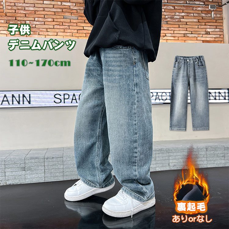 子供 男の子 ワイドパンツ デニム パンツ 裏起毛 キッズ ジーンズ ボーイズ ゆったり ストレート メンズ ジーパン ロングパンツ 春秋冬 長ズボン ボトムス 無地 おしゃれ ベビー お出 ジュニア