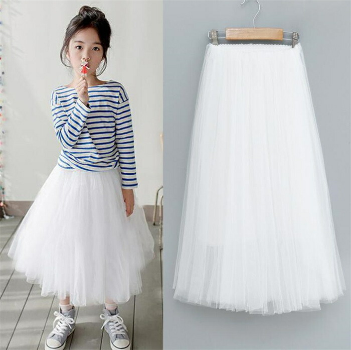 ふんわりチュールスカート 全8色 女の子 ガーリー チュチュスカート アパレル 発表会衣装 ロングスカート ダンス フレアスカート ペチコート ボリューム ふわふわ 子ども用 ロング
