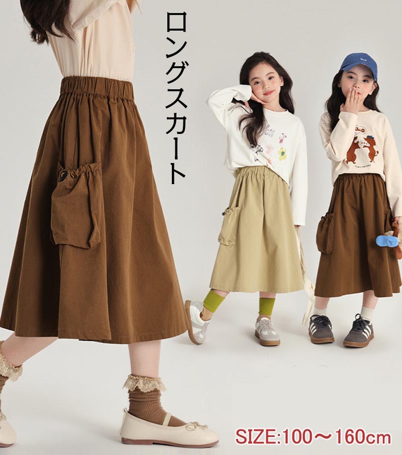 スカート ロングスカート ロング丈 カーゴスカート 長め 大人っぽい かわいい 可愛い キュート おしゃれ 女の子 ガールズ 女児 幼児 ジュニア 春 夏 小学生 ダンス衣装 発表会 イベント