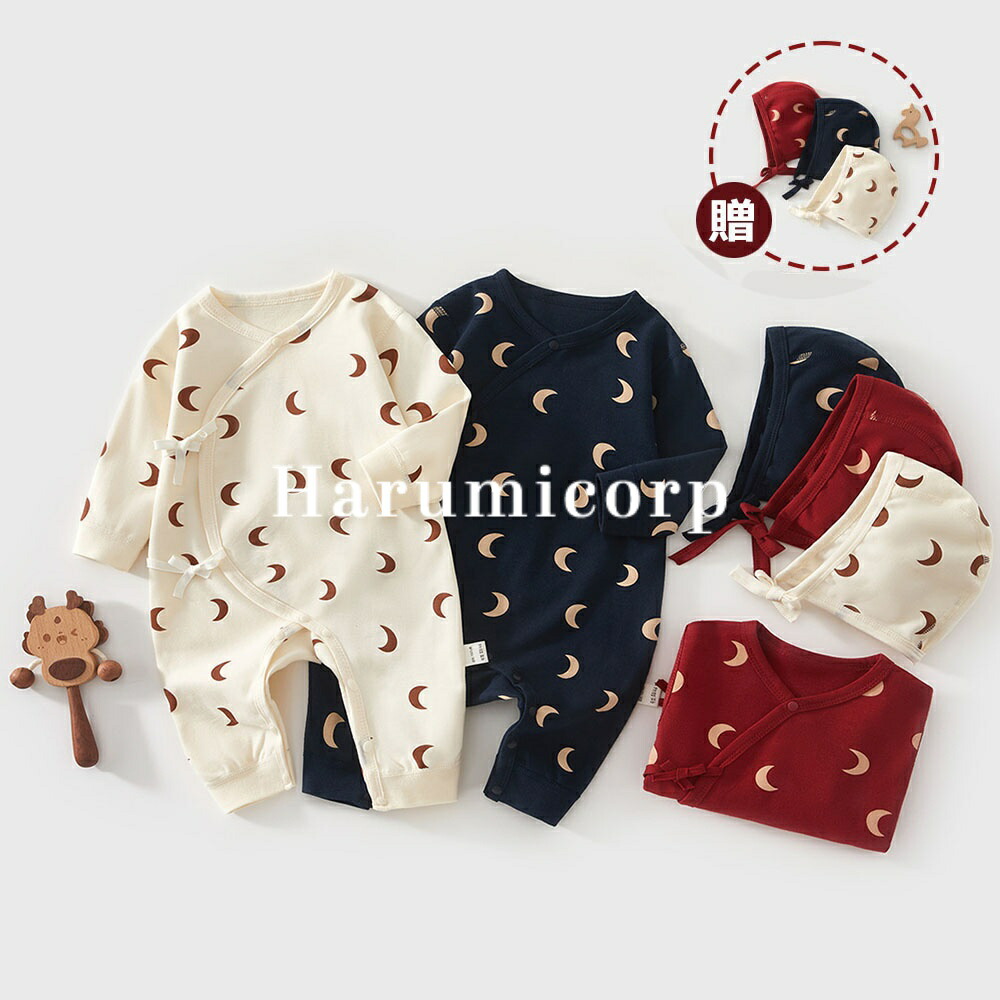帽子付き ロンパース 長袖 月 女の子 男の子 冬 秋冬 ベビー服 ベビー シンプル 前開き 新生児 カバーオール 退院着 ベビーロンパース おしゃれ 秋 綿 コットン100% 出産 赤ちゃん