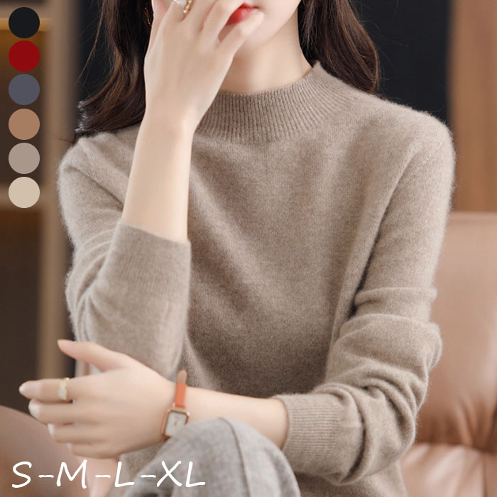 ウール100% ハイネック セーター ニット レディース トップス ニットセーター モックネック タートルネック プルオーバー チュニック アウター 春 秋 ストレッチ 長袖 体型 冬