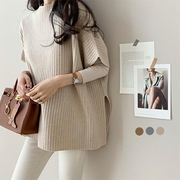 ポンチョ ニット ベスト サイド スリット ハイネック