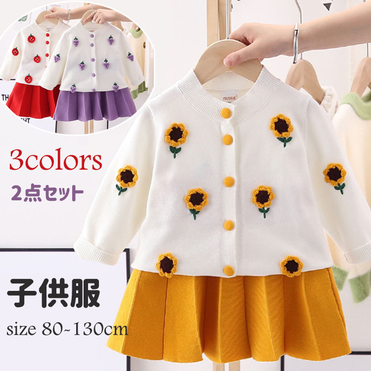 女の子 セットアップ 2点セット ベビー服 カーディガン スカート 春 秋 冬 キッズ こども 重ね着 子供服 ニットトップス 上下セット 七五三 結婚式 可愛い 通園 80 90 1 通学