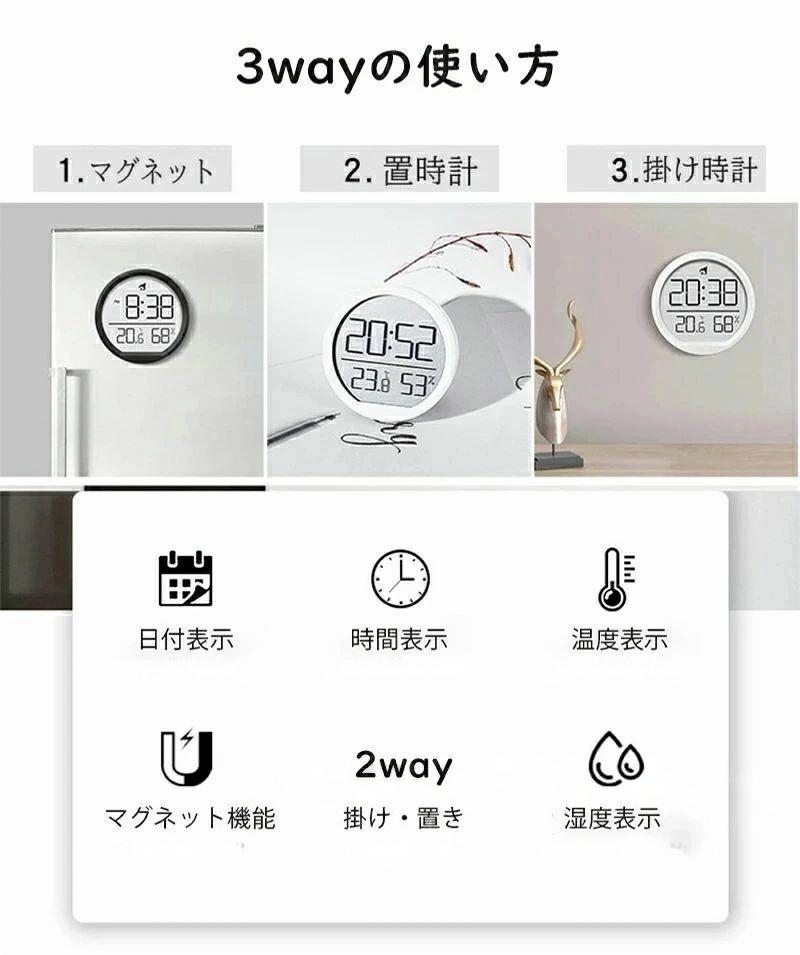 デジタル 時計 壁掛け ミニ 置時計 ホワイト ブラック