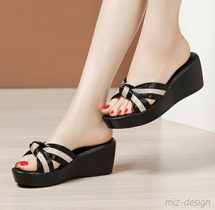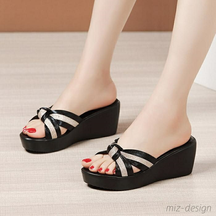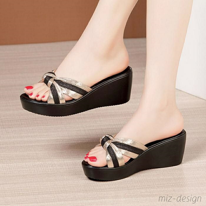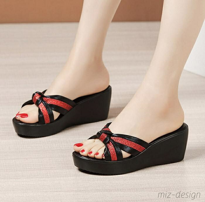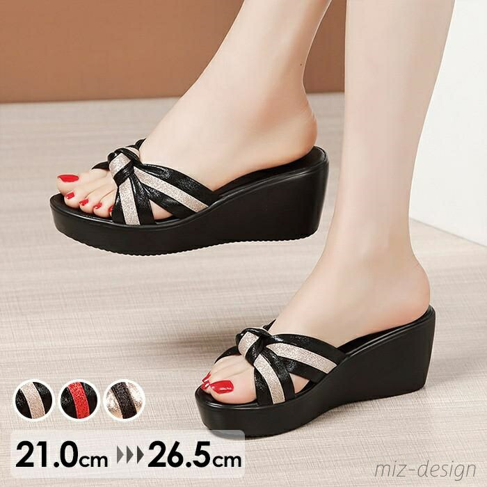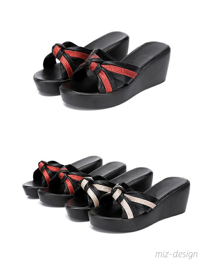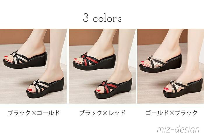 ミュール サンダル 厚底 ウエッジソー 靴 特集 ブラック×ゴールド ブラック×レッド ゴールド×ブラック 21.0 21.5 22.0 22.5 23.0 23.5 24.0 24.5 25.0 25.5 26.0 26.5