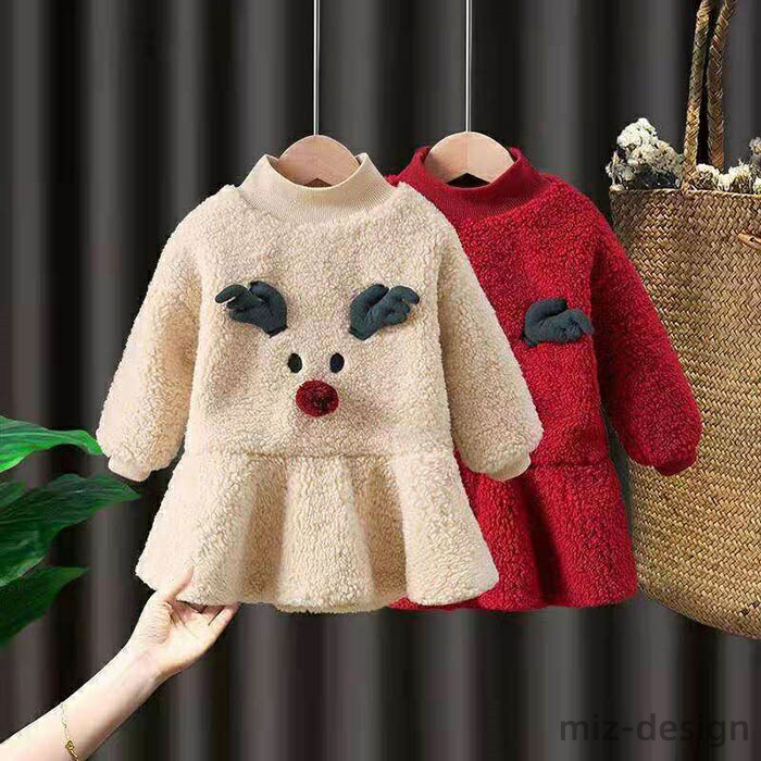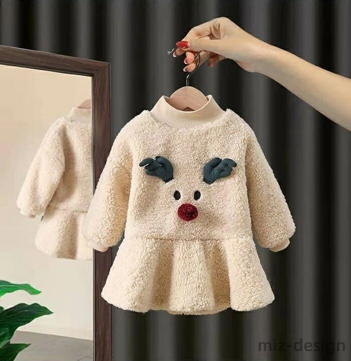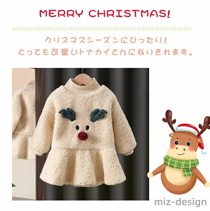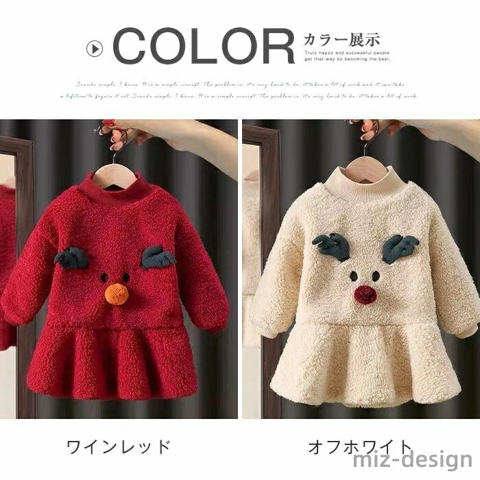 仮装 トナカイ 長袖 子供服 もこもこ コスプレ 変装 仮装 ワンピース 通販 ワインレッド オフホワイト 80 90 100 110 120 130