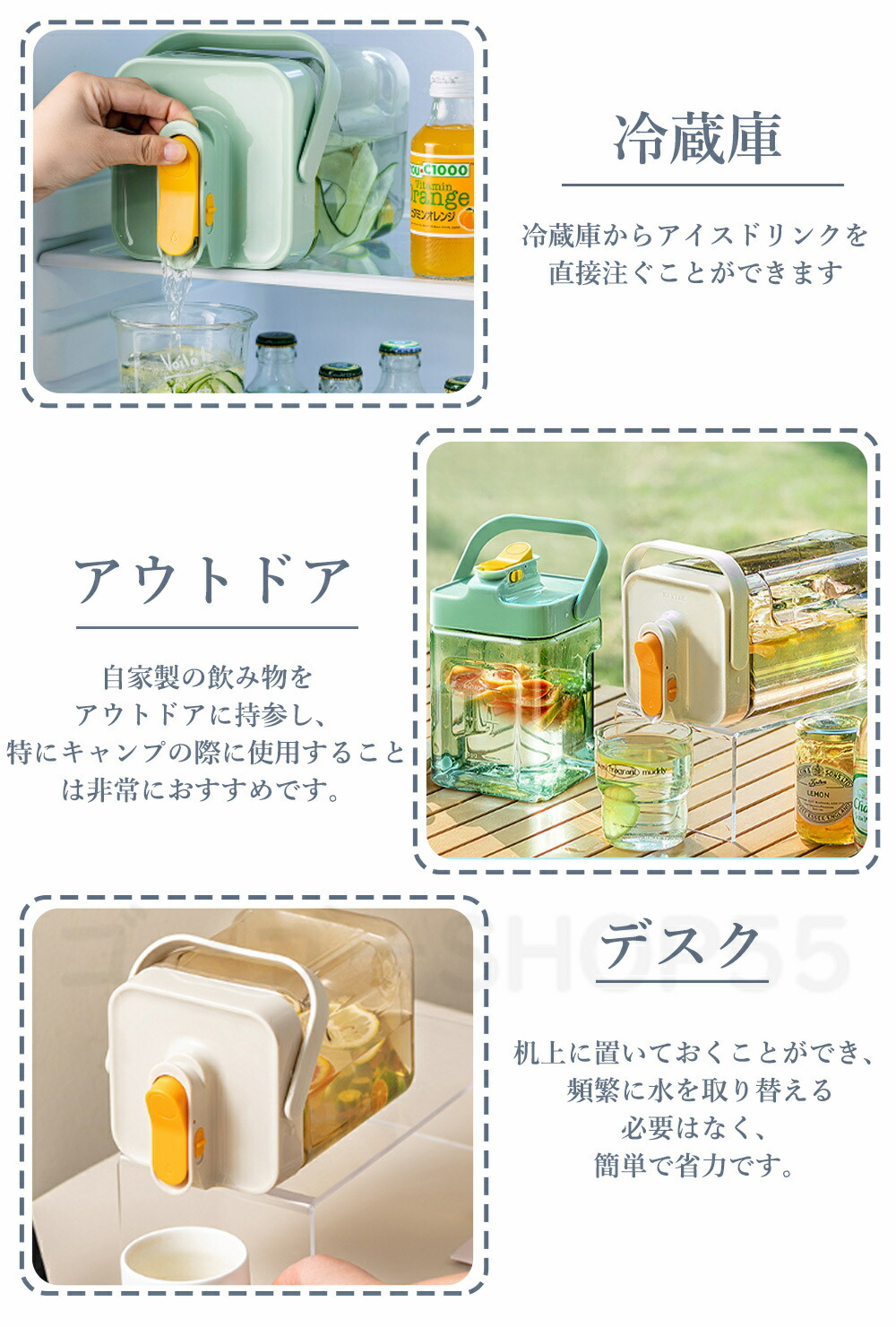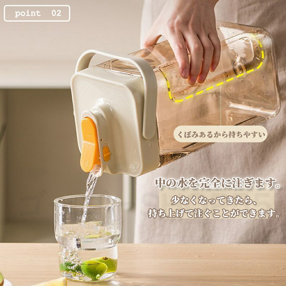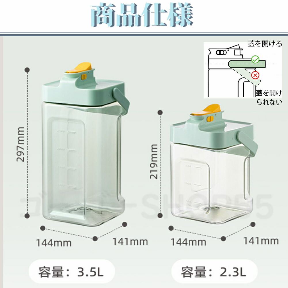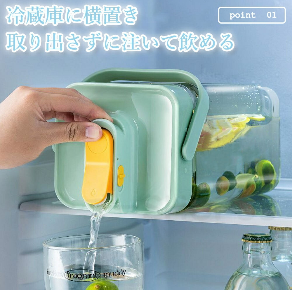 ウォーターボトル 横置き 冷蔵庫ポット 麦茶ポット 2.3L 3.5L お茶ポット 冷水筒 水差し 耐熱 2.3リットル 3.5リットル 蛇口付き ハンドル付き ドリンク ボトル 安全ロック