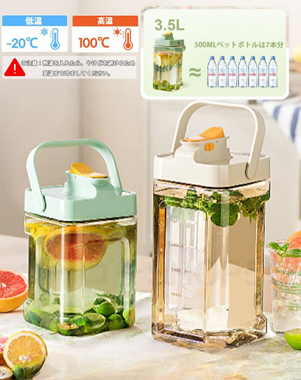 冷蔵庫ポットは食品に安全なAS素材でできており、安全で無毒、高温・低温に強く、-20℃~100℃の温度差に耐えるケトルです。熱湯を入れたら、やけどを避けるため室温まで冷ましてください。