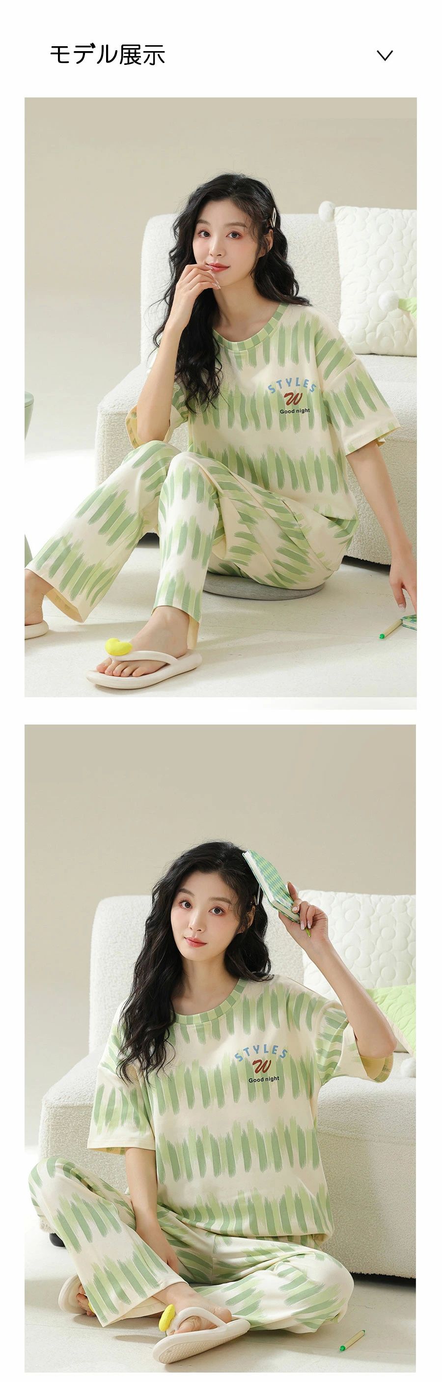 パジャマ 上下2点セット 夏用パジャマ インナー 下着 ナイトウエア 新登場! グリーン ホワイト イエロー A-グリーン B-グリーン ブラウン M(40-50kg) L(50-60kg) XL(60-70kg) 2XL(70-80kg)