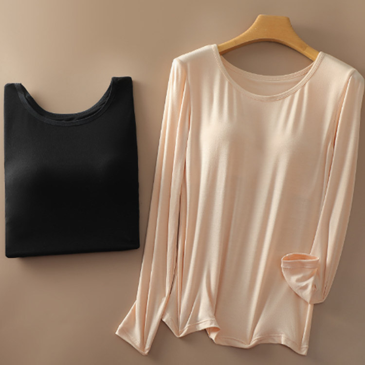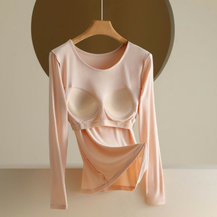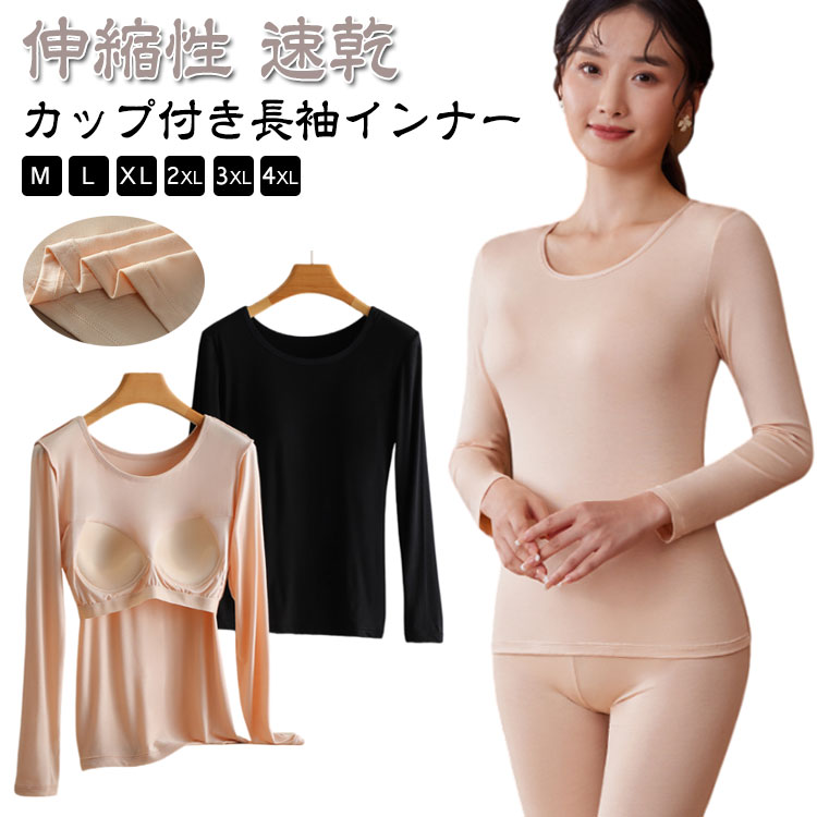 カップ付き インナー 長袖 レディース インナー 下着 ナイトウエア 続々登場 ベージュ ブラック M L XL 2XL 3XL 4XL